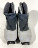 Boots are the most obviously distinctive family of Nordic ski boots. They have a 75mm wide "duck bill" at the front of the boot, with three holes on the bottom of the bill that line up with the pins on their appropriate binding.