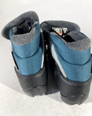 Boots are the most obviously distinctive family of nordic ski boots. They have a 75mm wide "duck bill" at the front of the boot, with three holes on the bottom of the bill that line up with the pins on their appropriate binding.