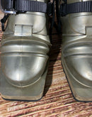 Boots are the most obviously distinctive family of nordic ski boots. They have a 75mm wide "duck bill" at the front of the boot, with three holes on the bottom of the bill that line up with the pins on their appropriate binding.