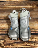 Boots are the most obviously distinctive family of Nordic ski boots. They have a 75mm wide "duck bill" at the front of the boot, with three holes on the bottom of the bill that line up with the pins on their appropriate binding.