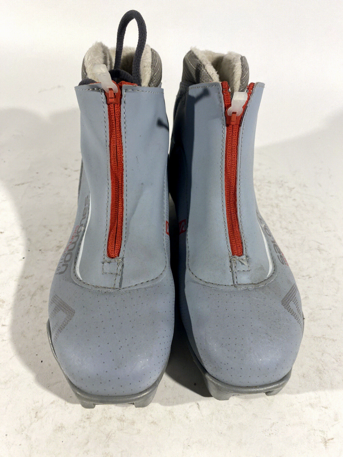 Boots are the most obviously distinctive family of nordic ski boots. They have a 75mm wide "duck bill" at the front of the boot, with three holes on the bottom of the bill that line up with the pins on their appropriate binding.