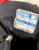 Boots are the most obviously distinctive family of nordic ski boots. They have a 75mm wide "duck bill" at the front of the boot, with three holes on the bottom of the bill that line up with the pins on their appropriate binding.