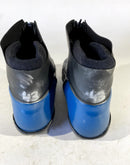 Boots are the most obviously distinctive family of nordic ski boots. They have a 75mm wide "duck bill" at the front of the boot, with three holes on the bottom of the bill that line up with the pins on their appropriate binding.