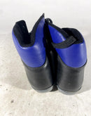 Boots are the most obviously distinctive family of nordic ski boots. They have a 75mm wide "duck bill" at the front of the boot, with three holes on the bottom of the bill that line up with the pins on their appropriate binding.