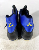 Boots are the most obviously distinctive family of nordic ski boots. They have a 75mm wide "duck bill" at the front of the boot, with three holes on the bottom of the bill that line up with the pins on their appropriate binding.