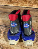 Boots are the most obviously distinctive family of Nordic ski boots. They have a 75mm wide "duck bill" at the front of the boot, with three holes on the bottom of the bill that line up with the pins on their appropriate binding.