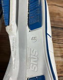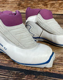 Boots are the most obviously distinctive family of Nordic ski boots. They have a 75mm wide "duck bill" at the front of the boot, with three holes on the bottom of the bill that line up with the pins on their appropriate binding.