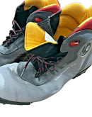 Boots are the most obviously distinctive family of nordic ski boots. They have a 75mm wide "duck bill" at the front of the boot, with three holes on the bottom of the bill that line up with the pins on their appropriate binding.