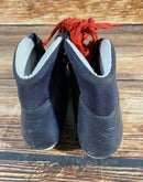 Boots are the most obviously distinctive family of Nordic ski boots. They have a 75mm wide "duck bill" at the front of the boot, with three holes on the bottom of the bill that line up with the pins on their appropriate binding.