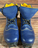 Boots are the most obviously distinctive family of nordic ski boots. They have a 75mm wide "duck bill" at the front of the boot, with three holes on the bottom of the bill that line up with the pins on their appropriate binding.