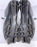 Boots are the most obviously distinctive family of nordic ski boots. They have a 75mm wide "duck bill" at the front of the boot, with three holes on the bottom of the bill that line up with the pins on their appropriate binding.