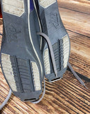 Boots are the most obviously distinctive family of Nordic ski boots. They have a 75mm wide "duck bill" at the front of the boot, with three holes on the bottom of the bill that line up with the pins on their appropriate binding.