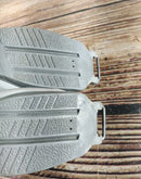 Boots are the most obviously distinctive family of nordic ski boots. They have a 75mm wide "duck bill" at the front of the boot, with three holes on the bottom of the bill that line up with the pins on their appropriate binding.