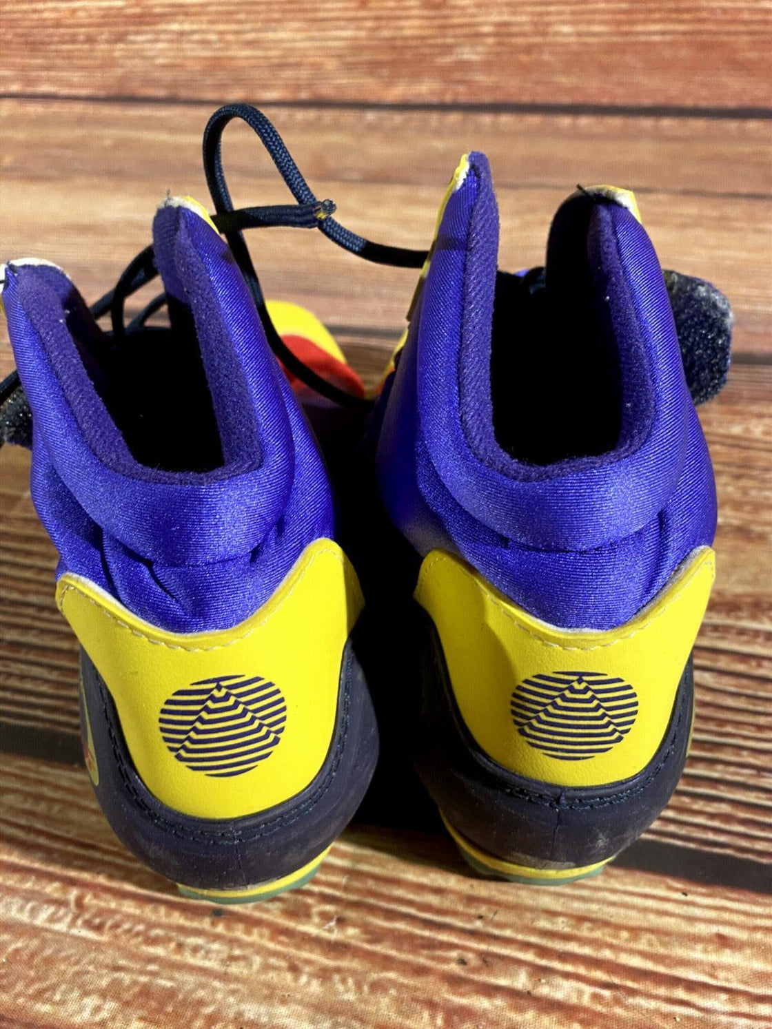 Boots are the most obviously distinctive family of nordic ski boots. They have a 75mm wide "duck bill" at the front of the boot, with three holes on the bottom of the bill that line up with the pins on their appropriate binding.
