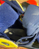 Boots are the most obviously distinctive family of nordic ski boots. They have a 75mm wide "duck bill" at the front of the boot, with three holes on the bottom of the bill that line up with the pins on their appropriate binding.