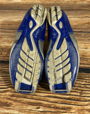 Boots are the most obviously distinctive family of nordic ski boots. They have a 75mm wide "duck bill" at the front of the boot, with three holes on the bottom of the bill that line up with the pins on their appropriate binding.