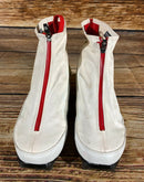 Boots are the most obviously distinctive family of Nordic ski boots. They have a 75mm wide "duck bill" at the front of the boot, with three holes on the bottom of the bill that line up with the pins on their appropriate binding.