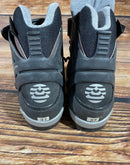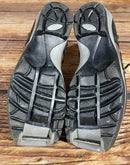 Boots are the most obviously distinctive family of nordic ski boots. They have a 75mm wide "duck bill" at the front of the boot, with three holes on the bottom of the bill that line up with the pins on their appropriate binding.