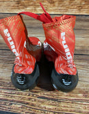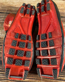 Boots are the most obviously distinctive family of Nordic ski boots. They have a 75mm wide "duck bill" at the front of the boot, with three holes on the bottom of the bill that line up with the pins on their appropriate binding.