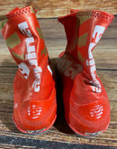 Boots are the most obviously distinctive family of nordic ski boots. They have a 75mm wide "duck bill" at the front of the boot, with three holes on the bottom of the bill that line up with the pins on their appropriate binding.