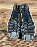 Boots are the most obviously distinctive family of Nordic ski boots. They have a 75mm wide "duck bill" at the front of the boot, with three holes on the bottom of the bill that line up with the pins on their appropriate binding.