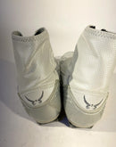 Boots are the most obviously distinctive family of nordic ski boots. They have a 75mm wide "duck bill" at the front of the boot, with three holes on the bottom of the bill that line up with the pins on their appropriate binding.