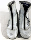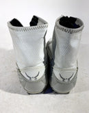 Boots are the most obviously distinctive family of nordic ski boots. They have a 75mm wide "duck bill" at the front of the boot, with three holes on the bottom of the bill that line up with the pins on their appropriate binding.