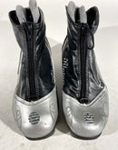 Boots are the most obviously distinctive family of nordic ski boots. They have a 75mm wide "duck bill" at the front of the boot, with three holes on the bottom of the bill that line up with the pins on their appropriate binding.
