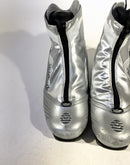 Boots are the most obviously distinctive family of nordic ski boots. They have a 75mm wide "duck bill" at the front of the boot, with three holes on the bottom of the bill that line up with the pins on their appropriate binding.