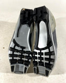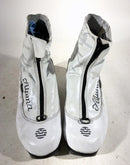 Boots are the most obviously distinctive family of nordic ski boots. They have a 75mm wide "duck bill" at the front of the boot, with three holes on the bottom of the bill that line up with the pins on their appropriate binding.