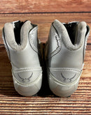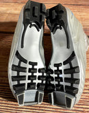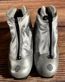 Boots are the most obviously distinctive family of nordic ski boots. They have a 75mm wide "duck bill" at the front of the boot, with three holes on the bottom of the bill that line up with the pins on their appropriate binding.