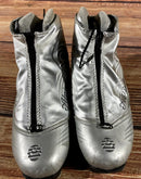 Boots are the most obviously distinctive family of nordic ski boots. They have a 75mm wide "duck bill" at the front of the boot, with three holes on the bottom of the bill that line up with the pins on their appropriate binding.