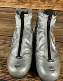 Boots are the most obviously distinctive family of Nordic ski boots. They have a 75mm wide "duck bill" at the front of the boot, with three holes on the bottom of the bill that line up with the pins on their appropriate binding.