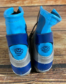 Boots are the most obviously distinctive family of nordic ski boots. They have a 75mm wide "duck bill" at the front of the boot, with three holes on the bottom of the bill that line up with the pins on their appropriate binding.