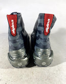 Boots are the most obviously distinctive family of nordic ski boots. They have a 75mm wide "duck bill" at the front of the boot, with three holes on the bottom of the bill that line up with the pins on their appropriate binding.