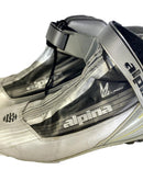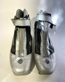Boots are the most obviously distinctive family of Nordic ski boots. They have a 75mm wide "duck bill" at the front of the boot, with three holes on the bottom of the bill that line up with the pins on their appropriate binding.