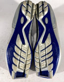 Boots are the most obviously distinctive family of nordic ski boots. They have a 75mm wide "duck bill" at the front of the boot, with three holes on the bottom of the bill that line up with the pins on their appropriate binding.
