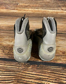Boots are the most obviously distinctive family of nordic ski boots. They have a 75mm wide "duck bill" at the front of the boot, with three holes on the bottom of the bill that line up with the pins on their appropriate binding.