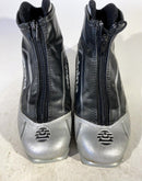 Boots are the most obviously distinctive family of nordic ski boots. They have a 75mm wide "duck bill" at the front of the boot, with three holes on the bottom of the bill that line up with the pins on their appropriate binding.