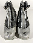 Boots are the most obviously distinctive family of nordic ski boots. They have a 75mm wide "duck bill" at the front of the boot, with three holes on the bottom of the bill that line up with the pins on their appropriate binding.