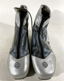 Boots are the most obviously distinctive family of nordic ski boots. They have a 75mm wide "duck bill" at the front of the boot, with three holes on the bottom of the bill that line up with the pins on their appropriate binding.