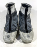 Boots are the most obviously distinctive family of nordic ski boots. They have a 75mm wide "duck bill" at the front of the boot, with three holes on the bottom of the bill that line up with the pins on their appropriate binding.