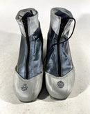 Boots are the most obviously distinctive family of Nordic ski boots. They have a 75mm wide "duck bill" at the front of the boot, with three holes on the bottom of the bill that line up with the pins on their appropriate binding.