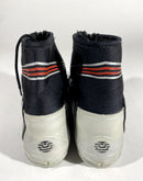 Boots are the most obviously distinctive family of nordic ski boots. They have a 75mm wide "duck bill" at the front of the boot, with three holes on the bottom of the bill that line up with the pins on their appropriate binding.