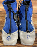 Boots are the most obviously distinctive family of nordic ski boots. They have a 75mm wide "duck bill" at the front of the boot, with three holes on the bottom of the bill that line up with the pins on their appropriate binding.