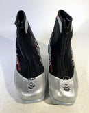 Boots are the most obviously distinctive family of nordic ski boots. They have a 75mm wide "duck bill" at the front of the boot, with three holes on the bottom of the bill that line up with the pins on their appropriate binding.
