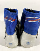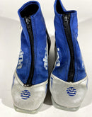 Boots are the most obviously distinctive family of nordic ski boots. They have a 75mm wide "duck bill" at the front of the boot, with three holes on the bottom of the bill that line up with the pins on their appropriate binding.