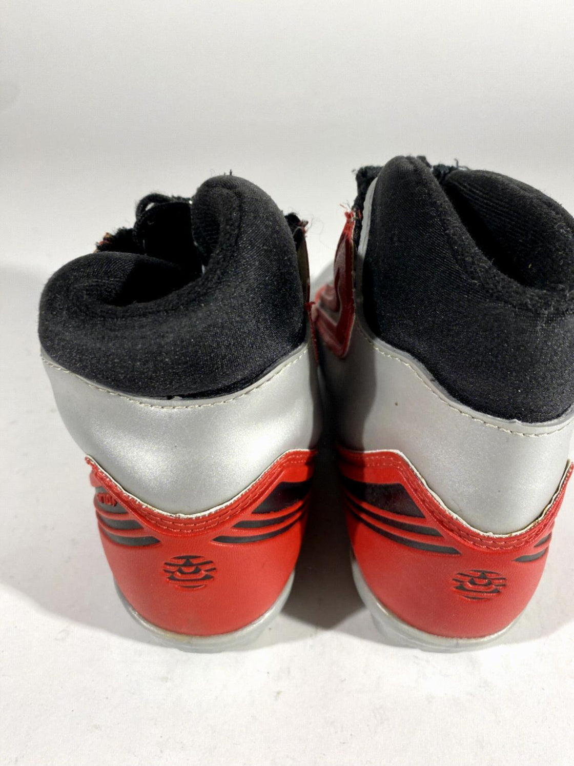 Boots are the most obviously distinctive family of nordic ski boots. They have a 75mm wide "duck bill" at the front of the boot, with three holes on the bottom of the bill that line up with the pins on their appropriate binding.