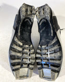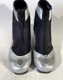 Boots are the most obviously distinctive family of nordic ski boots. They have a 75mm wide "duck bill" at the front of the boot, with three holes on the bottom of the bill that line up with the pins on their appropriate binding.