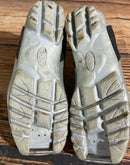 Boots are the most obviously distinctive family of nordic ski boots. They have a 75mm wide "duck bill" at the front of the boot, with three holes on the bottom of the bill that line up with the pins on their appropriate binding.